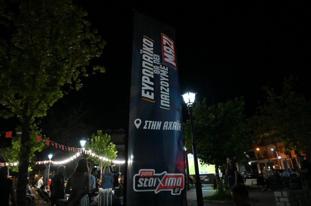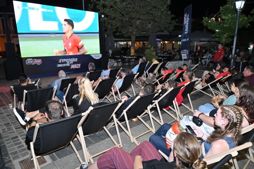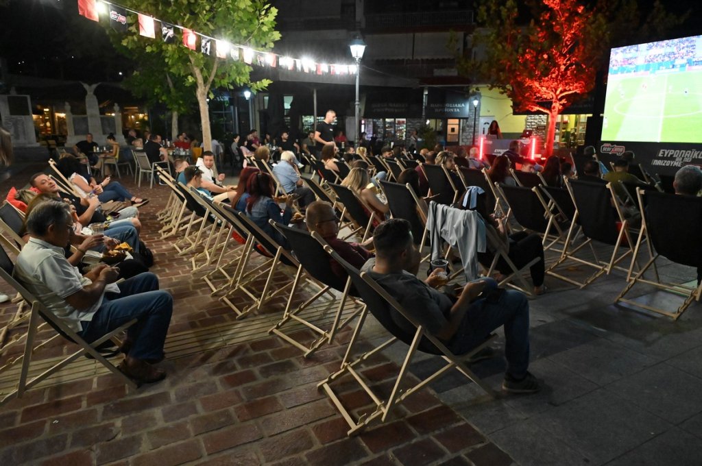 Προκειμένου, μάλιστα, να θυμούνται τις στιγμές που έζησαν στην ποδοσφαιρική βραδιά του Pamestoixima.gr, οι κάτοικοι της περιοχής έβγαλαν και αναμνηστικές φωτογραφίες σε ειδικό photo booth στα χρώματα του EURO.