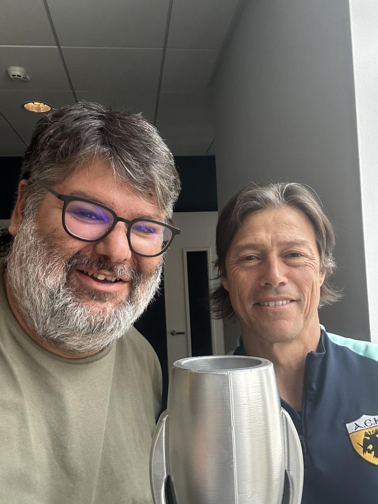 Ήταν πέρυσι τέτοιες ημέρες όταν ο Γρηγόρης από την Αθήνα ταξίδευε στην Ολλανδία για να δει από κοντά την προετοιμασία της ΑΕΚ και να αφήσει ένα γράμμα με λόγια καρδιάς στον Ματίας Αλμέιδα. Φέτος, ο γνωστός Ενωσίτης το έκανε ξανά και πάλι έχοντας για παρέα τον φίλο του τον Αντώνη. Βρέθηκε στο Burgh-Haamstede και προσέφερε και πάλι ένα όμορφο γράμμα στον Ματίας αλλά και έναν πολύτιμο οδηγό για τις διαφορετικές κουλτούρες για το πως να αντιμετωπίζει εκείνος και το staff του, τις πολιτισμικές διαφορές.