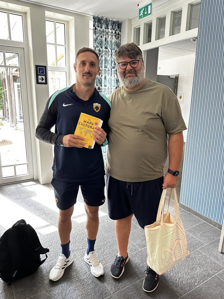 Οσον αφορά το βιβλίο που χάρισε ο Γρηγόρης στον Ματίας Αλμέιδα και όλα τα μέλη του staff, ήταν το "El Mapa Cultural”. Το βιβλίο αυτό αποτελεί έναν πολύτιμο οδηγό για την κατανόηση και τη συνεργασία με διαφορετικές κουλτούρες, προσφέροντας σημαντικές πληροφορίες για το τι να περιμένει κανείς σε διαφορετικές χώρες και πώς να αντιμετωπίζει τις πολιτισμικές διαφορές.