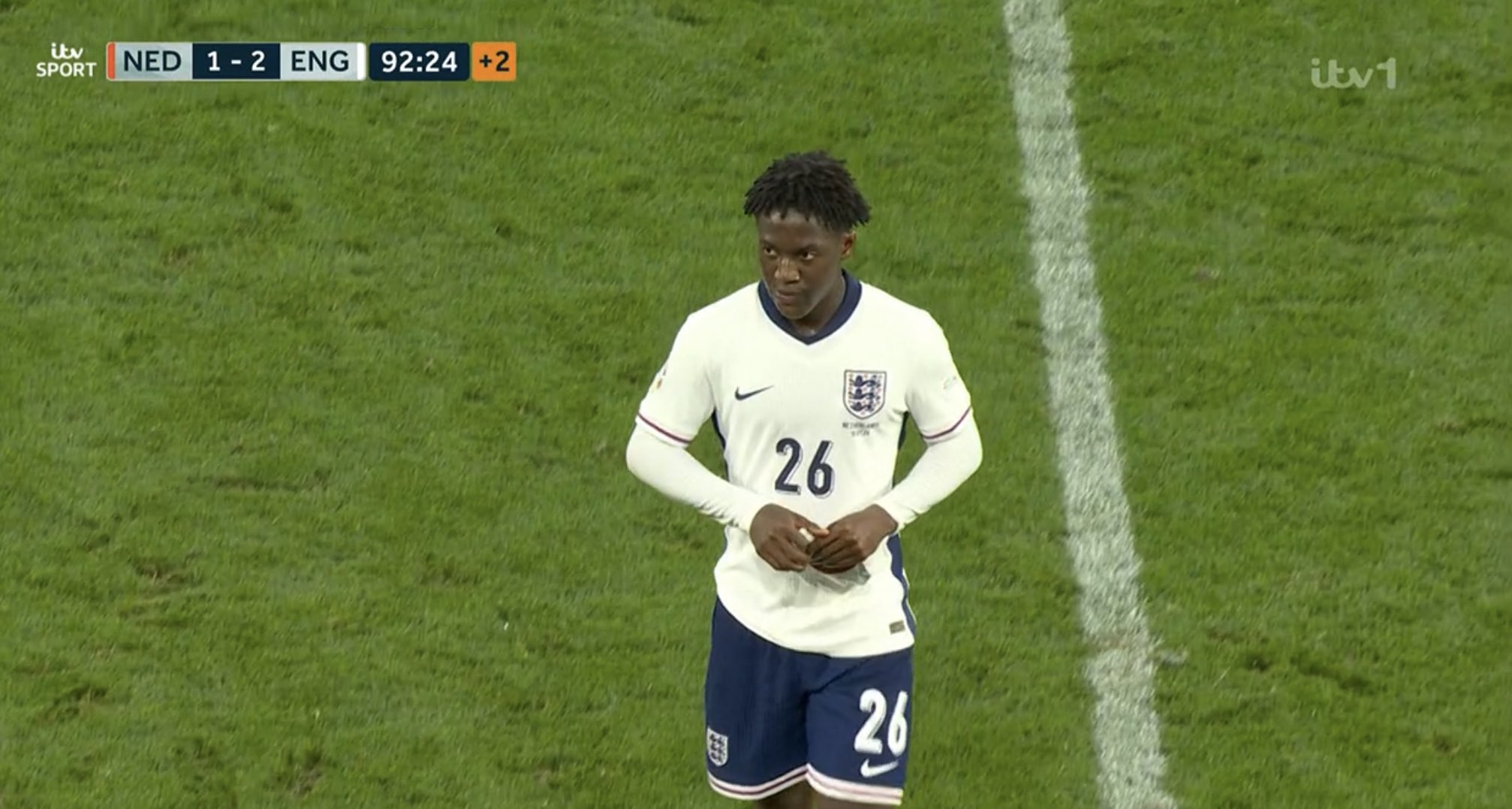 Στο 79ο λεπτό η Αγγλία σκόραρε με τον Σακά αλλά το γκολ ακυρώθηκε για οφσάιντ και στο 89’ ο Σο έκανε το γύρισμα από αριστερά, η μπάλα έφτασε απέναντι στον Πάλμερ αλλά εκείνος έκανε άστοχο σουτ.