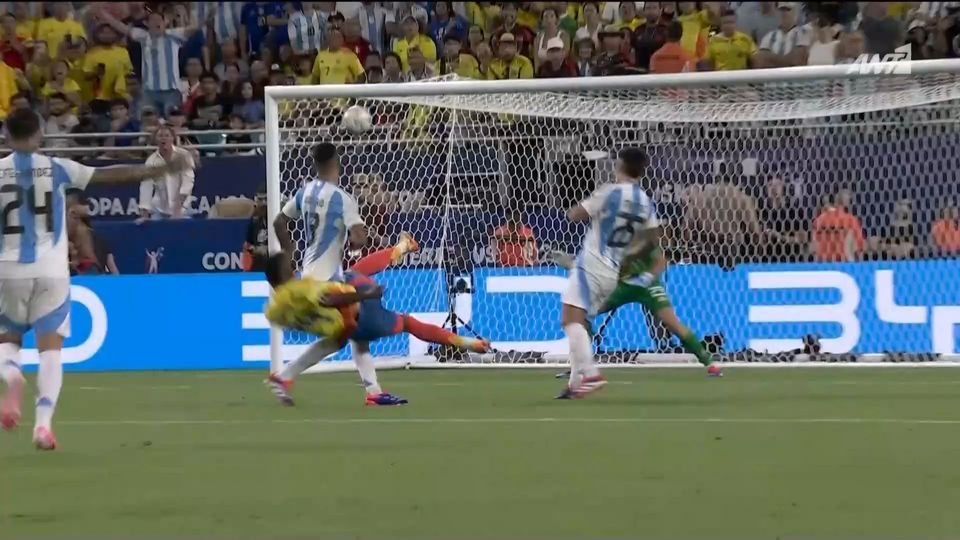 Στο 7ο λεπτό, η Κολομβία βρέθηκε μια ανάσα από το να ανοίξει το σκορ, απέναντι στην Αργεντινή, στον τελικό του Copa America. Ο Χάμες με κεφαλιά έστρωσε στον Κόρντομπα, ο οποίος, με ένα ωραίο βολ πλανέ, έστειλε την μπάλα στο δεξί δοκάρι.