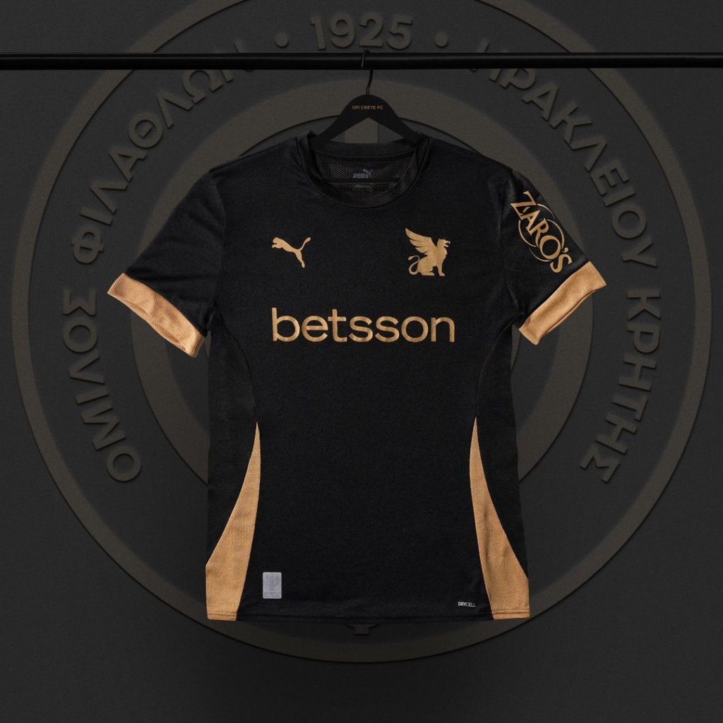 "Armored in black. Striking gold. H 4η φανέλα του ΟΦΗ για τη σεζόν 2024-25 είναι εδώ! Δημιουργία της @puma από ανακυκλώσιμα υλικά και την τεχνολογία dryCell.
