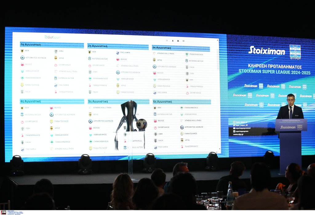 Σε εκδήλωση στη Βουλιαγμένη πραγματοποιείται η κλήρωση της σεζόν 2024-25 στη Super League. Το aek365 σας μεταφέρει φωτογραφικό ρεπορτάζ. Συνεχής ανανέωση.