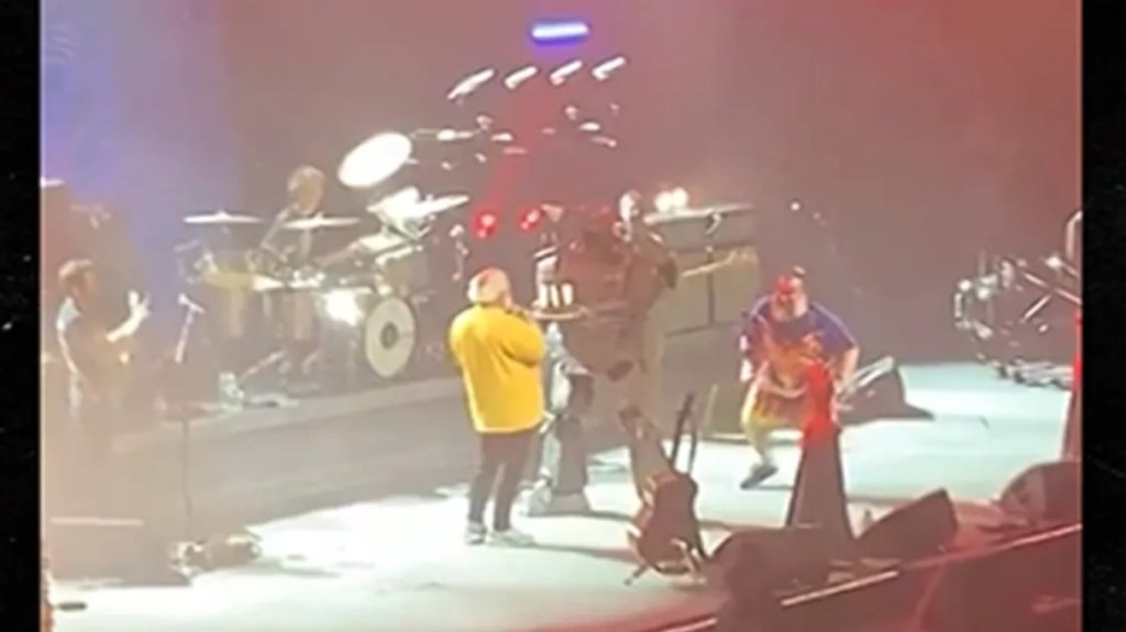 Πλάνα που αναρτήθηκαν στα μέσα κοινωνικής δικτύωσης από τη συναυλία του συγκροτήματος στο Σίδνεϊ την Κυριακή έδειξαν τον Μπλακ να παρουσιάζει στον Γκας μια τούρτα γενεθλίων στη σκηνή και να του λέει να «κάνει μια ευχή», με τον 64χρονο μουσικό και ηθοποιό να εύχεται «μην αστοχήσετε την επόμενη φορά» αναφερόμενος στον Τραμπ.
