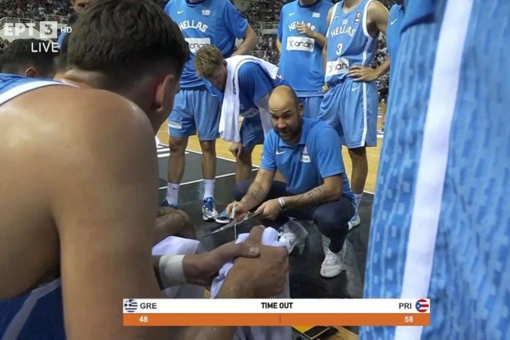 Δευτερόλεπτα πριν από το τέλος της τρίτης περιόδου, το Πουέρτο Ρίκο προηγούνταν 58-48 της Εθνικής Ελλάδας, σε φιλικό προετοιμασίας, με τον Βασίλη Σπανούλη να καλεί τάιμ άουτ, προκειμένου να βάλει τις φωνές στους Έλληνες διεθνείς.