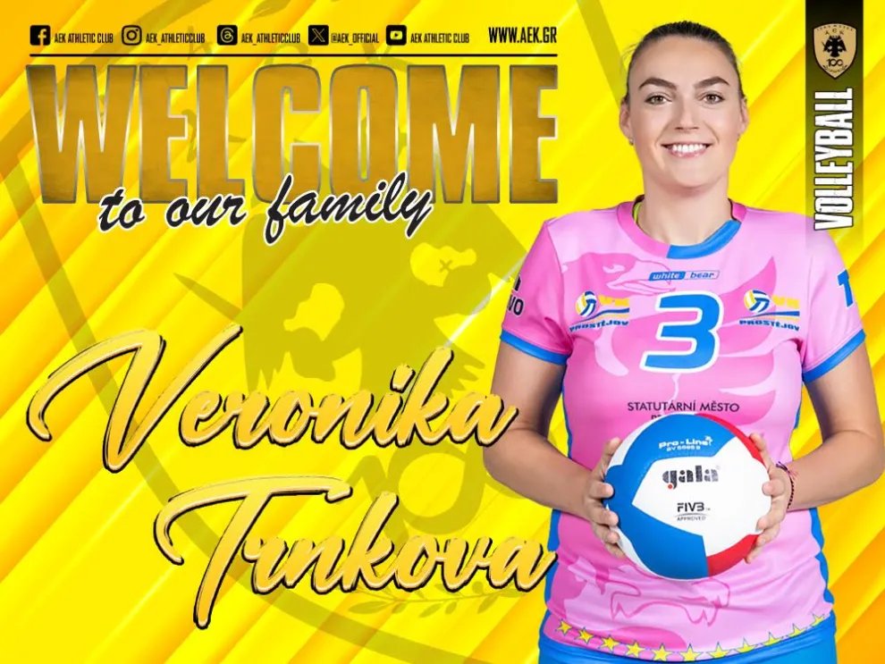 «Η ΑΕΚ βρίσκεται στην πολύ ευχάριστη θέση να ανακοινώσει την έναρξη της συνεργασίας της με την Βερόνικα Τρνίκοβα. Η διεθνής Τσέχα κεντρική είναι γεννημένη στις 13 Οκτωβρίου του 1995 και θα ενισχύσει το τμήμα του Βόλεϊ Γυναικών της νέας σεζόν.