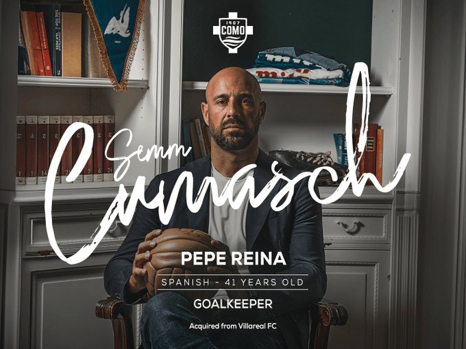 O Πέπε Ρέινα θα συνεχίσει την ποδοσφαιρική καριέρα του, καθώς υπέγραψε νέο συμβόλαιο με την Κόμο και θα επεκτείνει κι άλλο την επαγγελματική του καριέρα που άρχισε το 2000 στην Μπαρτσελόνα. Ο Ισπανός γκολκίπερ, που είχε αγωνιστεί επίσης σε Λίβερπουλ, Μπάγερν, Μίλαν, Νάπολι, Μονακό, Άστον Βίλα και Λάτσιο, κλείνει στις 31 Αυγούστου τα 42. Την τελευταία διετία έπαιζε στην Βιγιαρεάλ κάνοντας συνολικά 43 εμφανίσεις.