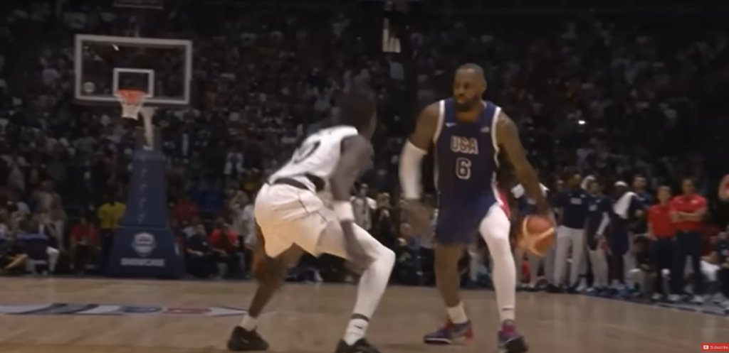 Λίγο πριν τη λήξη του ημιχρόνου, το Νότιο Σουδάν βρέθηκε στο +16, 42-58, όμως, η Team USA, χάρη και σε ένα σερί 16-0 στα τέλη του τρίτου δεκαλέπτου, προσπέρασε με 81-76. Τέσσερα λεπτά πριν το τέλος, το Νότιο Σουδάν μείωσε σε 95-92 και, στα 20 δευτερόλεπτα, πέρασε μπροστά στο σκορ, 99-100, χάρη σε τρίποντο του Τζέι Τι Θορ. Ο Λεμπρόν σκόραρε, για το 101-100 στα 8 δευτερόλεπτα, ο Καρλίκ Τζόουνς αστόχησε σε δίποντο, για ισοφάριση, με τον Γουένιεν Γκάμπριελ να μαζεύει το επιθετικό ριμπάουντ, αλλά μην καταφέρνει ούτε αυτός να ισοφαρίσει, για λογαριασμό του Νοτίου Σουδάν. Μάλιστα, διαμαρτυρήθηκε για φάουλ, που δεν δόθηκε από τους διαιτητές.