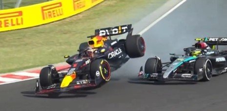 ???? Así ha sido el TOQUE BRUTAL de Max Verstappen con Lewis Hamilton.#F1 #HungarianGP ????????pic.twitter.com/01NbrC16dB
