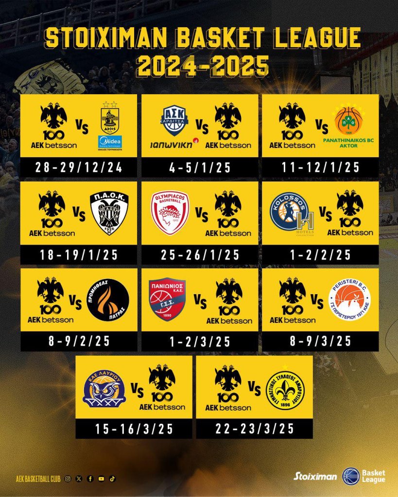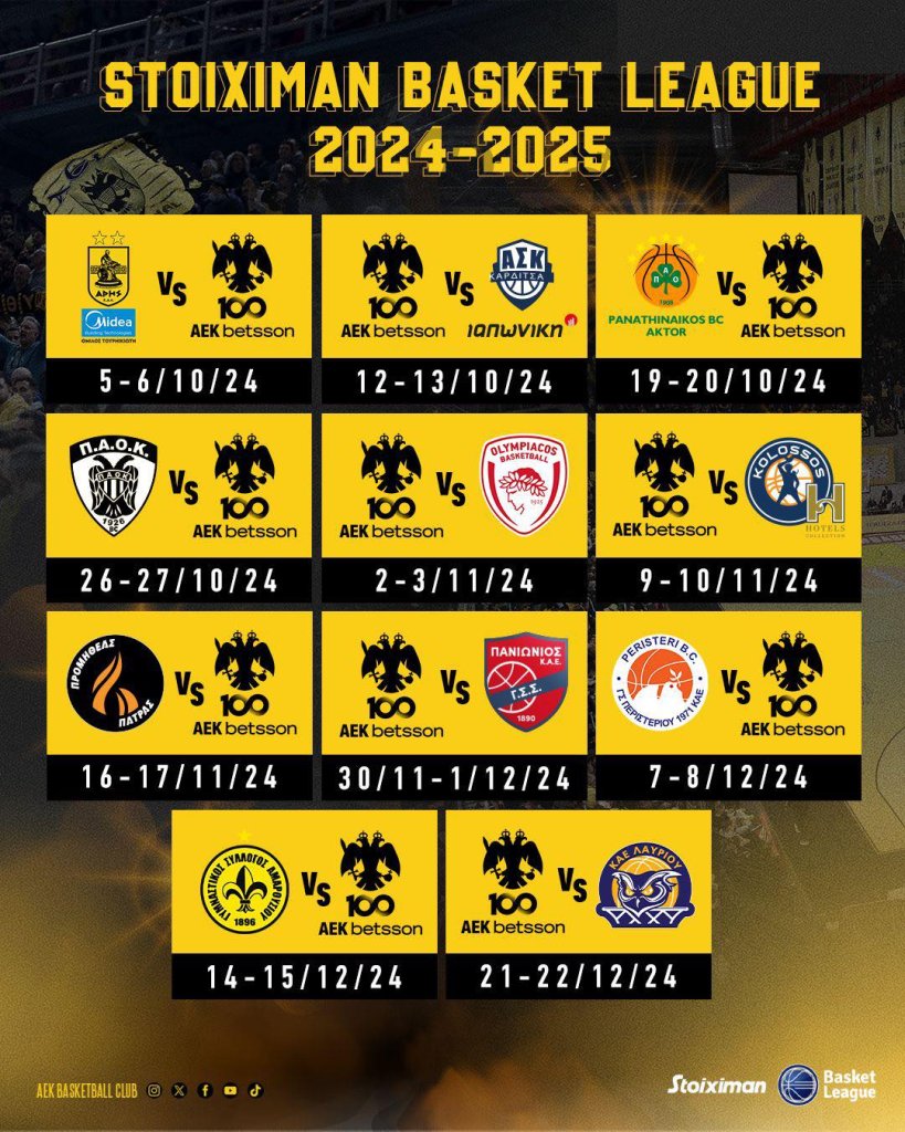 Το πρόγραμμα της ΑΕΚ στην Basket League