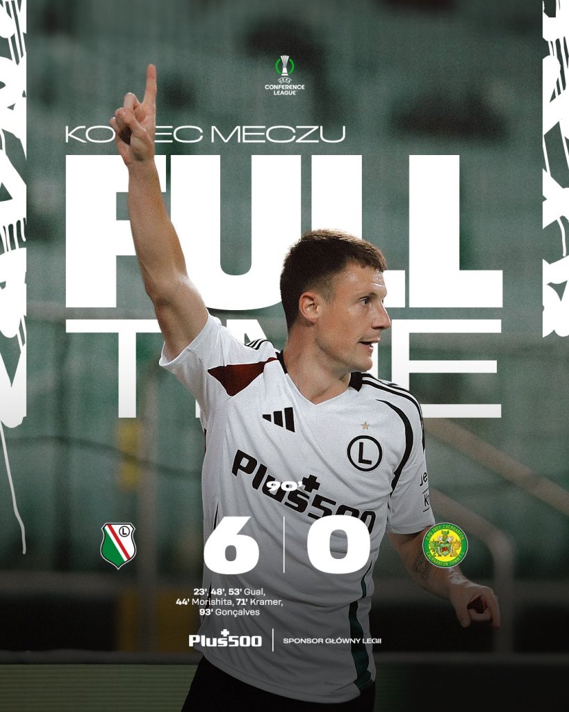 Άνετα η Λέγκια Βαρσοβίας. Η ομάδα από την Πολωνία, έχοντας τον Γκουάλ σε πολύ καλή μέρα κέρδισε 5-0 τη Σέρναφρον καθαρίζοντας την πρόκριση. Ο Ισπανός άνοιξε το σκορ στο 22΄με τον Μορισίτα να κάνει το 2-0 στο 44’. Ο Γκουάλ στο 48’ και στο 53’ χτύπησε ξανά δύο φορές για το 4-0, με τον Κράμερ στο 71’ να κάνει το 5-0. Κερασάκι στην τούρτα από τον Γκονσάλβες στις καθυστερήσεις για το 6-0 των Πολωνών.