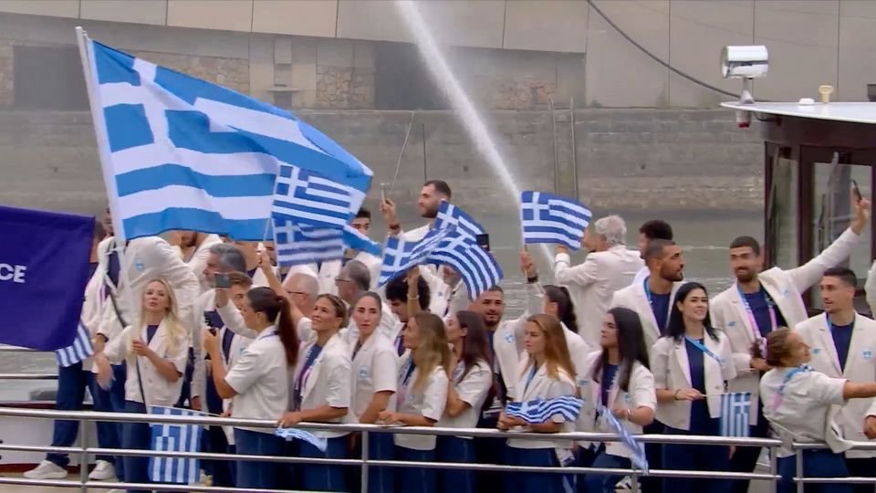 Όπως συμβαίνει σε κάθε τελετή έναρξης Ολυμπιακών Αγώνων, η ελληνική αποστολή εμφανίστηκε πρώτη στον ποταμό Σηκουάνα, μόνο που οι Γάλλοι, που είχαν αναλάβει τη τηλεοπτική παραγωγή, κατάφεραν να "εξαφανίσουν" από το πλάνο τον Γιάννη Αντετοκούνμπο.