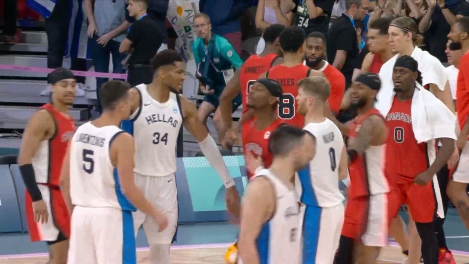 Ο Καναδάς νίκησε την Ελλάδα, για τη πρώτη αγωνιστική του Α' Ομίλου του ολυμπιακού τουρνουά, και, στο φινάλε, προκλήθηκε ένταση μεταξύ των παικτών.