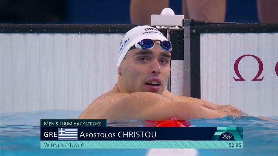 Στον προκριματικό των 100 μέτρων ύπτιο, στους Ολυμπιακούς Αγώνες του Παρισιού, συμμετείχαν Απόστολος Χρήστου και Βαγγέλης Μακρυγιάννης, με τους δυο κολυμβητές να παίρνουν το εισιτήριο για τον ημιτελικό.
