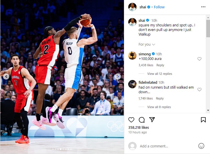 Σε μια από τις φωτογραφίες που "ανέβασε", ο Σάι Γκίλτζιους-Αλεξάντερ εμφανίζει να κόβει προσπάθεια του Γουόκαπ, για σουτ. Στις υπόλοιπες, ο Καναδός απολαμβάνει τη βόλτα του στην πόλη Λιλ.
