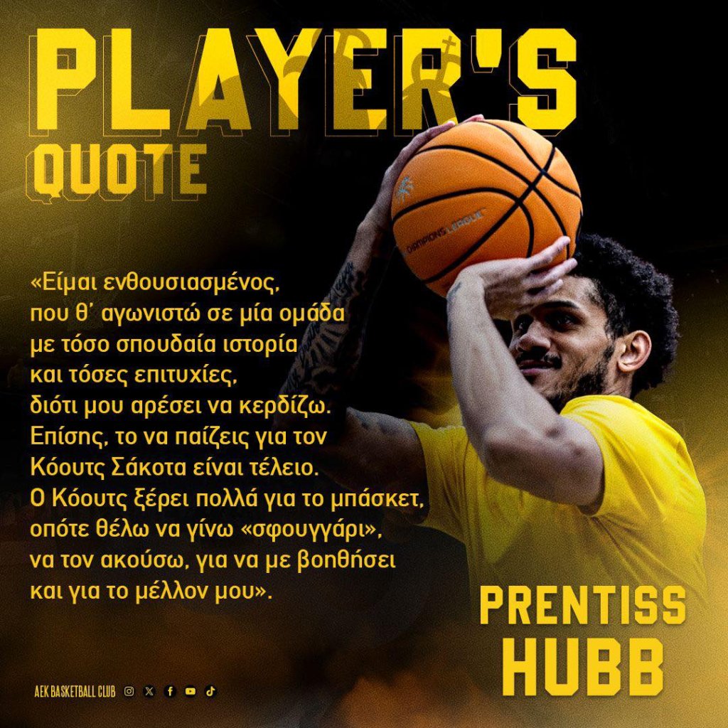 Ο Πρέντις Χαμπ έγινε πριν από λίγες μέρες, το πρώτο φετινό μεταγραφικό απόκτημα της ομάδας μπάσκετ της ΑΕΚ και πλέον έκανε και τις πρώτες δηλώσεις του. Ο Αμερικανός πόιντ γκαρντ δεν έκρυψε τον ενθουσιασμό του, για το ότι θα αγωνιστεί σε μία μεγάλη ομάδα όπως η Βασίλισσα.