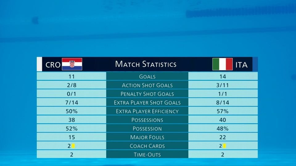 Η Ιταλία πήρε μία άτυπη ρεβάνς από την Κροατία, για την ήττα της στον τελικό του Παγκοσμίου Πρωταθλήματος της Ντόχα, καθώς τη νίκησε 14-11, στο ντέρμπι της 2ης αγωνιστικής του Α΄ ομίλου, στο ανδρικό τουρνουά υδατοσφαίρισης των Ολυμπιακών Αγώνων "Παρίσι 2024".