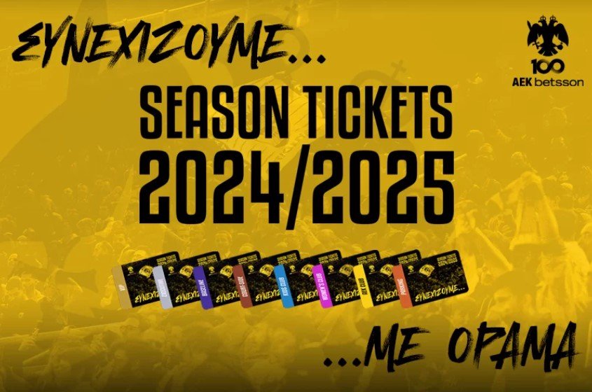 Η ΚΑΕ ΑΕΚ εξέδωσε επίσημη ανακοίνωση, μέσω της οποίας και ενημέρωσε αναλυτικά για όλες τις λεπτομέρειες, σχετικά με τα εισιτήρια διαρκείας για τη νέα σεζόν (2024-25), που συνεχίζεται κανονικά, σε καθημερινή βάση. Αναλυτικά: «Η ΑΕΚ BETSSON ΒC ενημερώνει, ότι συνεχίζεται ηλεκτρονικά και τηλεφωνικά η διάθεση των Εισιτηρίων Διαρκείας των αγώνων της «Βασίλισσας», στο Olympic Hall των Άνω Λιοσίων, για την αγωνιστική περίοδο 2024-2025.