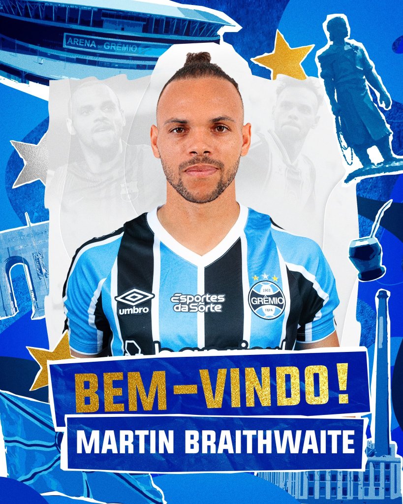 Επίσημα ποδοσφαιριστής της Γκρέμιο ο Μάρτιν Μπρέιθγουεϊτ! Ο 33χρονος επιθετικός έφτασε πάρα πολύ κοντά στο να υπογράψει συμβόλαιο συνεργασίας με τον Ολυμπιακό πριν από κάποιες μέρες, με τις διαπραγματεύσεις όμως τελικά να «ναυαγούν», επιλέγοντας τελικά να συνεχίσει την καριέρα του στη Βραζιλία!
