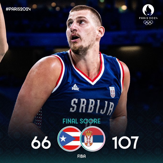 Την πρώτη της νίκη στους Ολυμπιακούς Αγώνες 2024 πανηγύρισε το βράδυ της Τετάρτης (31/07) η Σερβία, η οποία συνέτριψε με 107-66 το Πουέρτο Ρίκο, στο πλαίσιο της δεύτερης αγωνιστικής του τρίτου ομίλου. Έχοντας επτά παίκτες με διψήφιο αριθμό πόντων, οι «πλάβι» έκαναν επίδειξη δύναμης επί της ομάδας από την Καραϊβική από το ξεκίνημα κιόλας του αγώνα, φτάνοντας στο ροζ φύλλο με χαρακτηριστική άνεση.