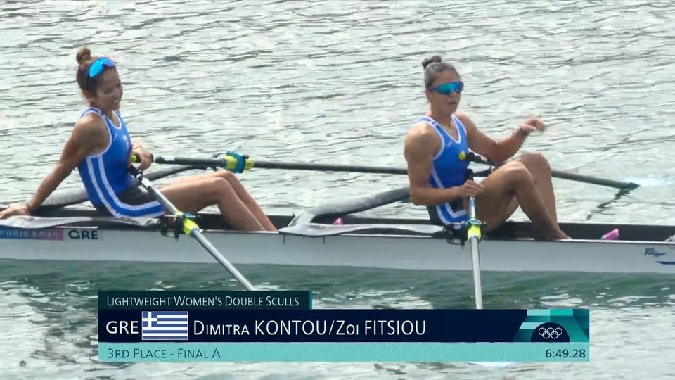 Την τρίτη θέση στον τελικό του διπλού σκιφ ελαφρών βαρών γυναικών έλαβαν οι Ελληνίδες κωπηλάτριες και έφεραν το τέταρτο μετάλλιο στην Ελλάδα