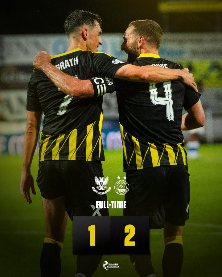 Ο Ντέβλιν άνοιξε το σκορ στο 22ο λεπτό και ο ΜακΓκράθ έκανε το 0-2 στο 63’. Στο 88' η Σεντ Τζόνστον μείωσε σε 2-1 χάρη σε αυτογκόλ του Μολόι.