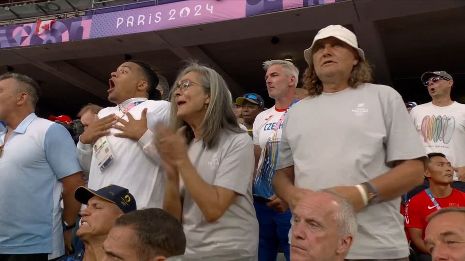 Επική ήταν η αντίδραση του χάλκινου Ολυμπιονίκη του επί κοντώ, μόλις ο Τεντόγλου "κλείδωσε" το χρυσό μετάλλιο, με άλμα στα 8.48μ., στον τελικό του μήκους.