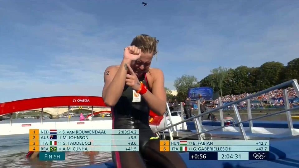 Τελικά, οι κολυμβήτριες έπεσαν κανονικά στον ποταμό και πρώτη τερμάτισε η Σάρον Φαν Ρούβεντααλ.