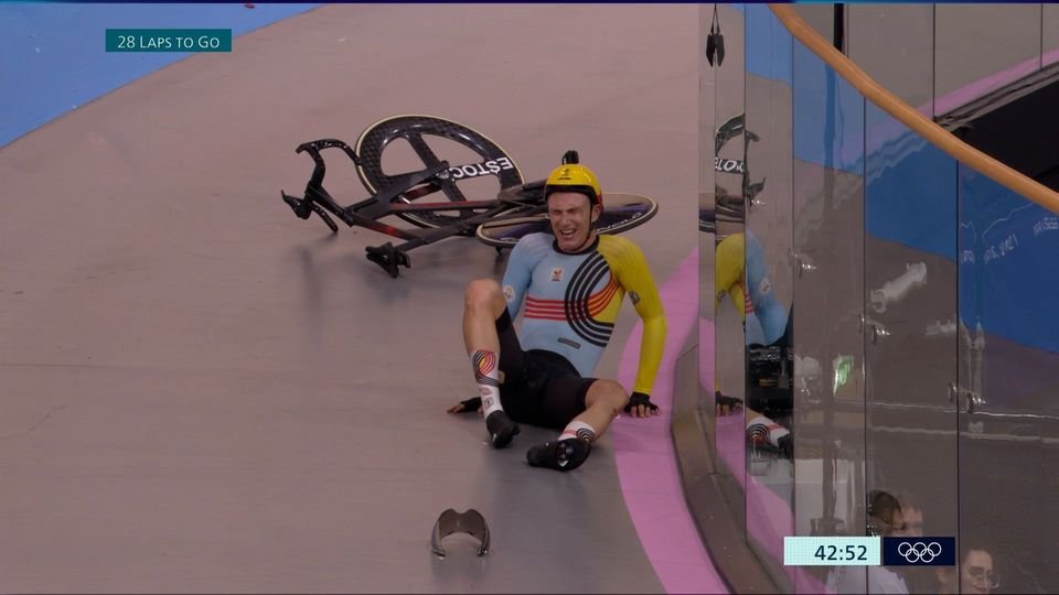 Άσχημο ατύχημα έλαβε χώρα στην ποδηλασία πίστας, με ποδηλάτη να εκσφενδονίζεται στον αέρα λίγο αφότου αντίπαλός του που προηγουμένως είχε χάσει τον έλεγχο έπεσε πάνω του, παρασύροντάς τον.