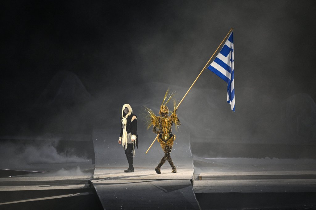 Ο Εθνικός Ύμνος της Ελλάδας ακούστηκε στο Stade de France, στο οποίο είχαν σβήσει τα φώτα, ενώ ανυψώθηκε και η ελληνική σημαία, με το όλο σκληνικό να μοιάζει με δυστοπία.