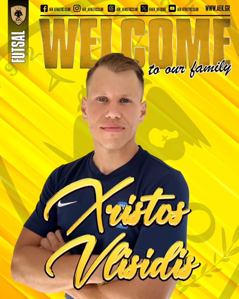 Η ΑΕΚ βρίσκεται στην ευχάριστη θέση να ανακοινώσει την έναρξη της συνεργασίας της με τον Χρήστο Βλυσίδη. Ο 29χρονος (19/09/1995) αθλητής εντάσσεται στο δυναμικό της ανδρικής ομάδας Futsal της ΑΕΚ.
