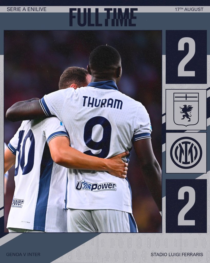 Στο 40ο λεπτό ο Γκολίνι είπε όχι εντυπωσιακά σε μακρινό σουτ του Λαουτάρο και στο 60’ ο γκολκίπερ της Τζένοα σταμάτησε και τον Τουράμ. Τελικά στο 82ο λεπτό ο Φρατέζι έβγαλε μαγική κάθετη στον Τουράμ κι εκείνος πρόλαβε την έξοδο του Γκολίνι και τσίμπησε για τι 1-2. Ωστόσο στο 90+3’ ο Μπίσεκ έκανε πέναλτι, ο Ζόμερ απέκρουσε την εκτέλεση του Μεσίας αλλά ο ίδιος πήρε το ριμπάουντ κι έγραψε το 2-2.