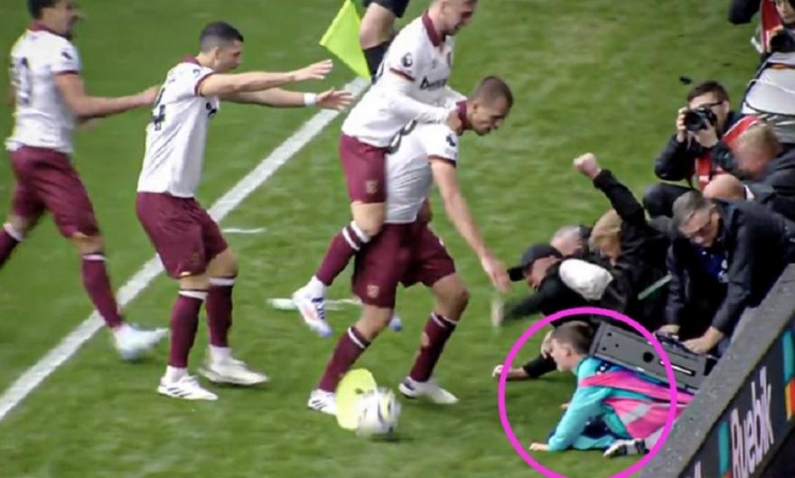 Τη στιγμή που ο Σούτσεκ άνοιξε το σκορ για τα «σφυριά», οι φίλοι της ομάδας του Λοπετέγι από την τρέλα και την ορμή του, πίεσαν τόσο πολύ τις διαφημιστικές πινακίδες που εκείνες έπεσαν πάνω σε ένα από τα ball-boys.