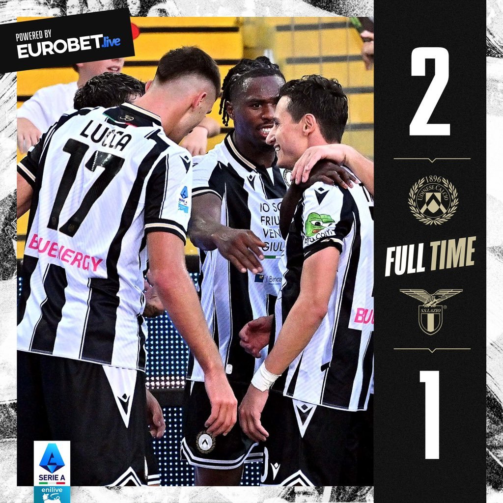 Τεράστια νίκη πανηγύρισε η Ουντινέζε, η οποία κέρδισε τη Λάτσιο με 2-1.