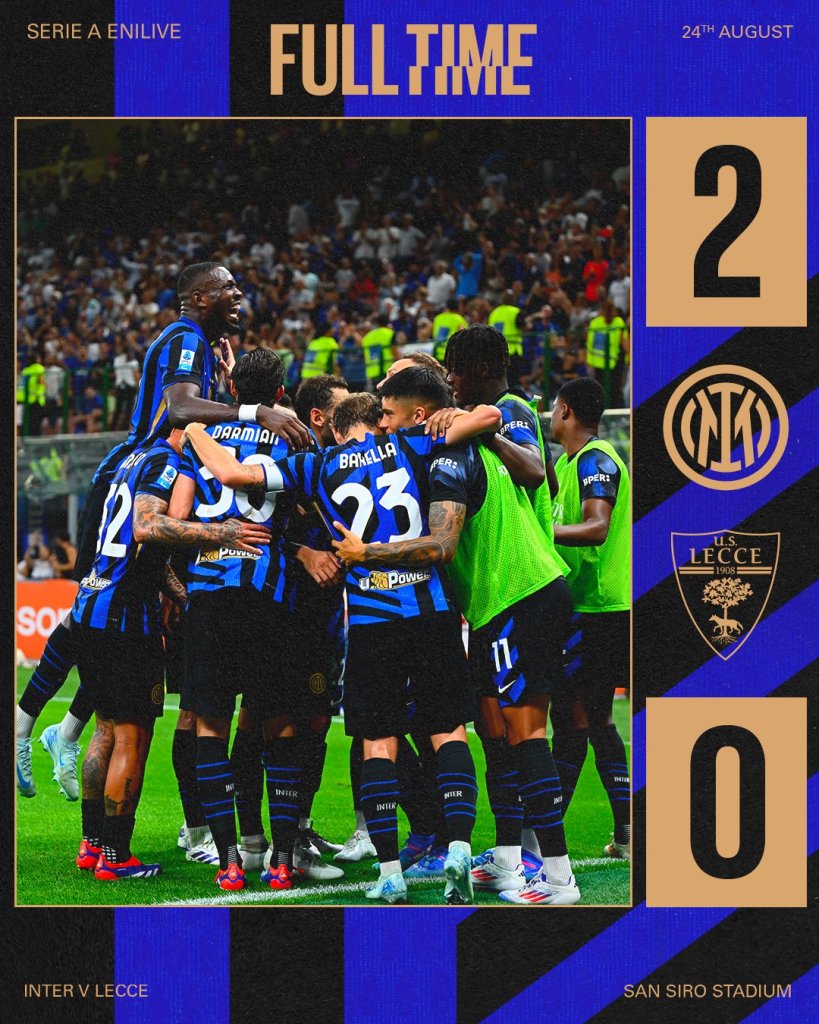 Σεφτέ στις νίκες έκανε η Ίντερ, η οποία κέρδισε με 2-0 τη Λέτσε.