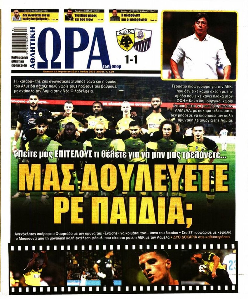 Εδώ κάνει καυστική κρητική η εφημερίδα απέναντι στη συμπεριφορά των παικτών και του προπονητικού team απέναντί μας και κάποιοι εδώ μέσα μας πιάνουν από τα μούτρα. Εμείς πληρώνουμε κύριοι για εμάς και τα παιδιά μας εμείς θα κάνουμε σωστή κρητική, σαρκαστική ΝΑΙ προσβλητική ΟΧΙ.