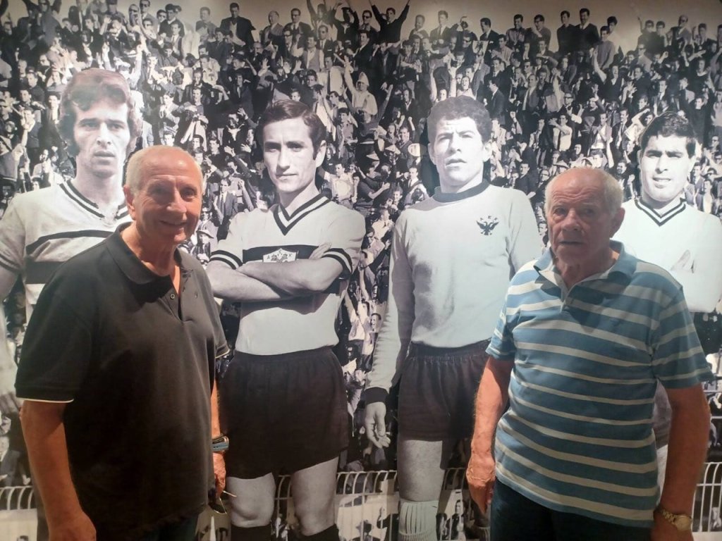 Οι δύο παλαίμαχοι ποδοσφαιριστές ξεναγήθηκαν στο Μουσείο και φωτογραφήθηκαν μπροστά στα ολογράμματά τους, τα οποία είναι τοποθετημένα μαζί με αυτά άλλων παλαιών άσων στην είσοδο του Μουσείου.