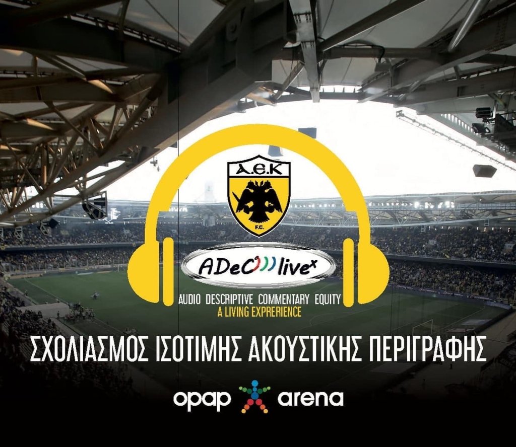 Από τη πρώτη στιγμή λειτουργίας της OPAP ARENA, στόχος της ΠΑΕ ΑΕΚ ήταν να καταστήσει και να διατηρήσει το γήπεδό μας φιλικό προς ΟΛΟΥΣ τους φιλάθλους μας. Σε αυτό το πλαίσιο, και με σκοπό την καλύτερη δυνατή εμπειρία παρακολούθησης αγώνων για τους φίλους της ομάδας μας με προβλήματα όρασης, θα λειτουργήσει και την αγωνιστική περίοδο 2024-25 ο Ολοκληρωμένος Σχολιασμός Ισότιμης Ακουστικής Περιγραφής [ΑDeC)))livex]. Ένα σύστημα που προσφέρει «ζωντανή» βιωματική περιγραφή του (κάθε) αγώνα, το οποίο είχε υποδεχθεί θερμά από την πρώτη στιγμή και ο γνωστός φίλος της ΑΕΚ, Μάρκος Κυκιβαράκης.