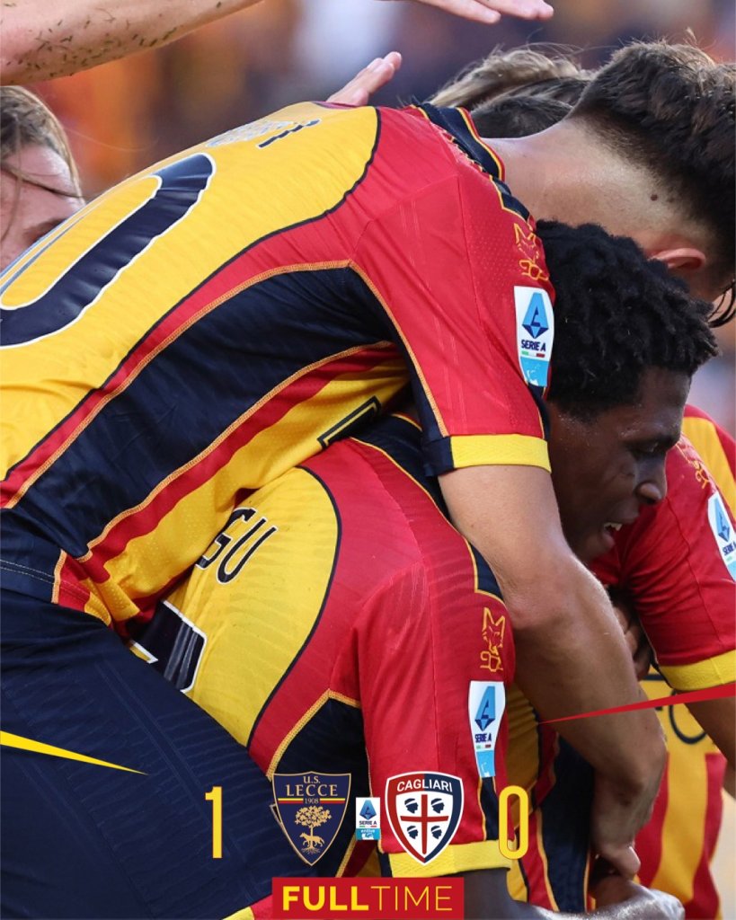 Σεφτέ στους βαθμούς έκανε η Λέτσε, η οποία κέρδισε με 1-0 την Κάλιαρι κακι μάλιστα ενώ αγωνίστηκε με παίκτη λιγότερο σε όλο το 2ο μέρος.