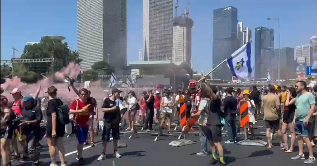 מפגינים חוסמים את איילון צפון @AnnaPines_ pic.twitter.com/VmqQFiuQOL