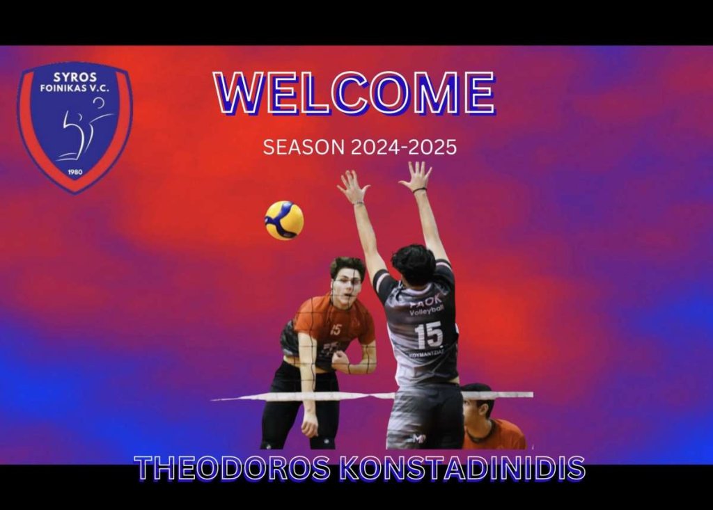 Παίκτης της ανδρικής ομάδας βόλεϊ του Φοίνικα Σύρου έγινε και επίσημα ο 20χρονος κεντρικός, Θεόδωρος Κωνσταντινίδης. Η σχετική ανακοίνωση αναφέρει τα παρακάτω: «Βρισκόμαστε στην ευχάριστη θέση να ανακοινώσουμε την έναρξη της συνεργασίας μας με τον αθλητή Θεόδωρο Κωσταντινίδη.