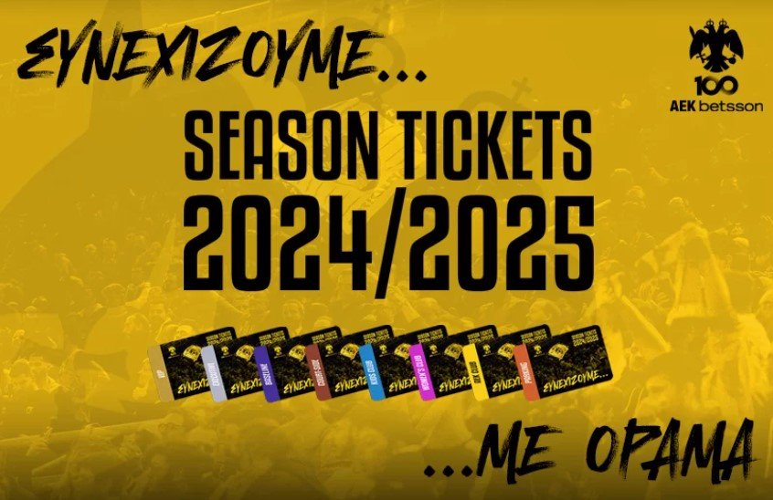 Η επίσημη ανακοίνωση της ΚΑΕ ΑΕΚ έχει ως εξής: «Η ΑΕΚ BETSSON ΒC ενημερώνει, ότι συνεχίζεται ηλεκτρονικά και τηλεφωνικά η διάθεση των Εισιτηρίων Διαρκείας των αγώνων της «Βασίλισσας», στο Olympic Hall της Φυλής (Kωνσταντινουπόλεως 59, Άνω Λιόσια), για την αγωνιστική περίοδο 2024-2025.