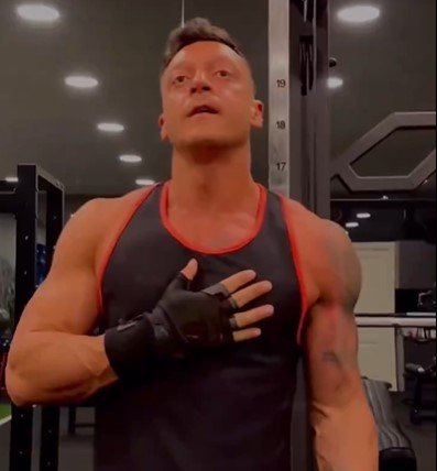Μπορεί ο Μεσούτ Οζίλ όσο ήταν ποδοσφαιριστής να ξεχώριζε για την τεχνική του κατάρτιση και όχι για τη σωματική του εικόνα μιας και δεν ήταν κάποιο δυνατό κορμί, ωστόσο τώρα βρήκε στη γυμναστική το μέσο ενασχόλησης του μετά το ποδόσφαιρο.