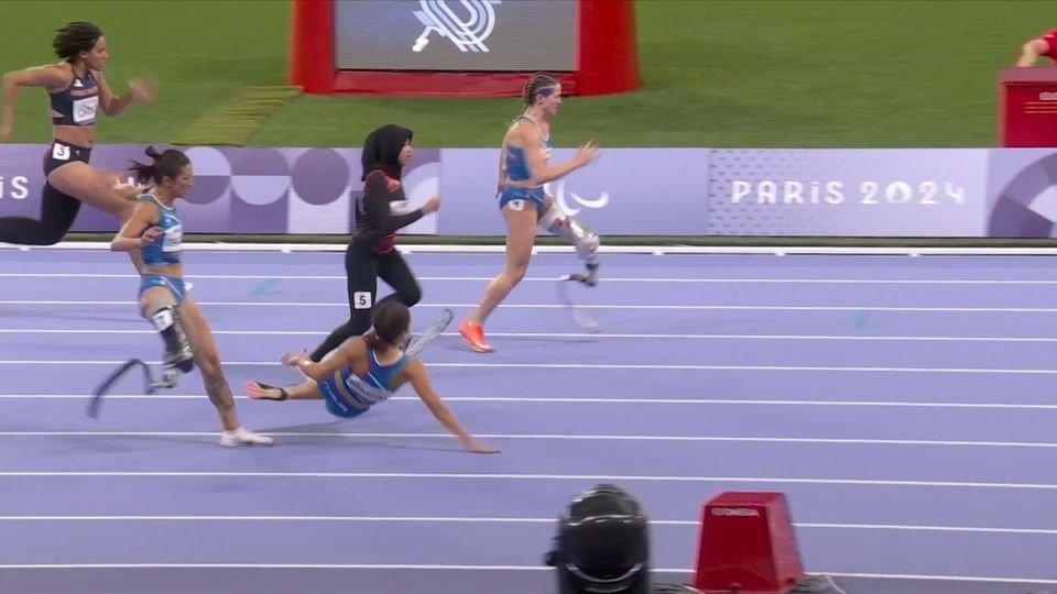 Η Σαμπατίνι φαινόταν ότι θα είναι εκείνη που θα πάρει την πρώτη θέση, όμως ελάχιστα μέτρα πριν τη γραμμή τερματισμού έχασε την ισορροπία της και βρέθηκε στο έδαφος συμπαρασύροντας ακόμα μια αθλήτρια.