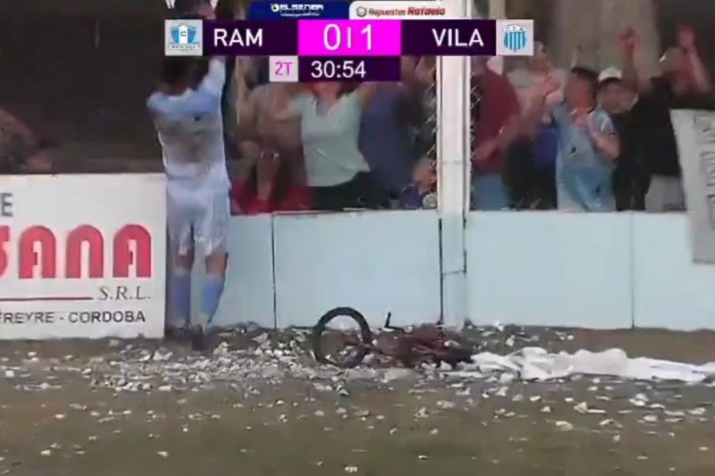 ¡CAYÓ DE TODO! Deportivo Ramona, de la Liga Rafaelina, descendió de categoría tras perder 1-0 ante Argentino Vila y caer 2-0 en el global. A los 30' del ST, comenzó a caer una lluvia de proyectiles hacia al campo de juego.... ¡hasta una BICICLETA arrojaron! pic.twitter.com/d0K4cLOa4w