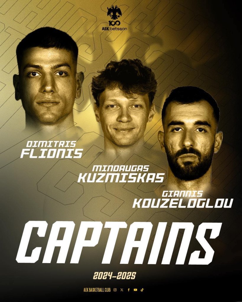 Όπως έγινε επίσημα γνωστό πλέον, προέκυψαν οι τρεις νέοι αρχηγοί της ομάδας μπάσκετ της ΑΕΚ, για την προσεχή αγωνιστική περίοδο (2024-25). Όπως και πέρυσι, ο Δημήτρης Φλιώνης θα είναι ο πρώτος αρχηγός της Βασίλισσας. Μαζί του, πλέον, θα είναι επίσης οι Μιντάουγκας Κουζμίνσκας και Γιάννης Κουζέλογλου. Οι τρεις αυτοί παίκτες της Ένωσης, παρέμειναν από το περσινό ρόστερ και τη φετινή σεζόν, οπότε είναι από τους «παλιούς» και ειδικά ο Φλιώνης είναι ο παλαιότερος, αφού πλέον θα παίξει στην ΑΕΚ για τέταρτη σερί σεζόν.
