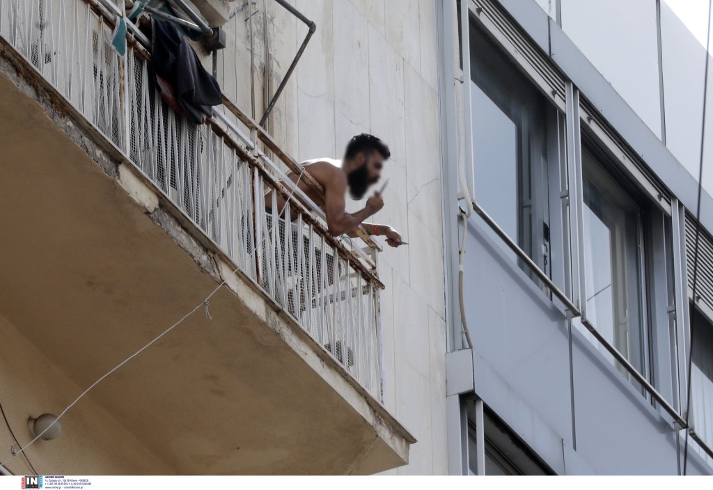 Συνελήφθη σε επιχείρηση της ΕΚΑΜ και μεταφέρθηκε στο αστυνομικό τμήμα Ομονοίας ο 28χρονος αλλοδαπός που απειλούσε να αυτοκτονήσει από μπαλκόνι του 6ου ορόφου. Εθεάθη με μπουκάλα υγραερίου, «απειλώντας να ανατινάξει το τετράγωνο», εθεάθη και να κρατά ένα μαχαίρι στο δεξί κι ένα στο αριστερό χέρι, ενώ κάποιοι είπαν ότι είχε και το Κοράνι.