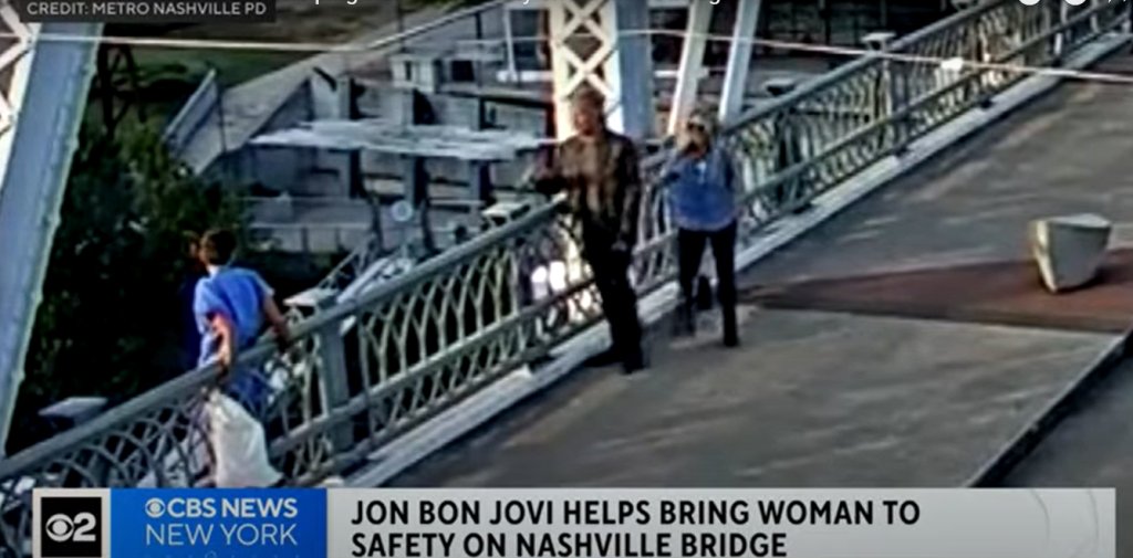 Το αστυνομικό τμήμα του Νάσβιλ μοιράστηκε ένα βίντεο του frontman των Bon Jovi και της ομάδας του που βρίσκονταν στην πεζογέφυρα John Seigenthaler όταν η «ταραγμένη» γυναίκα στεκόταν επισφαλής πάνω από τον ποταμό Cumberland.