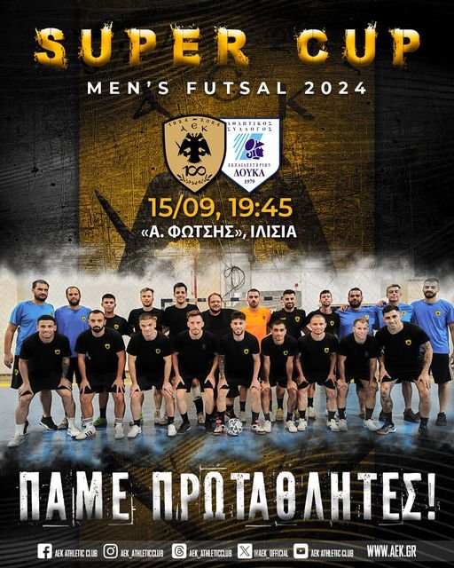 Την Κυριακή, στο κλειστό των Ιλισίων, η ομάδα Futsal της ΑΕΚ θα αντιμετωπίσει τον Δούκα, για το Σούπερ Καπ, διεκδικώντας τον πρώτο τίτλο της σεζόν.