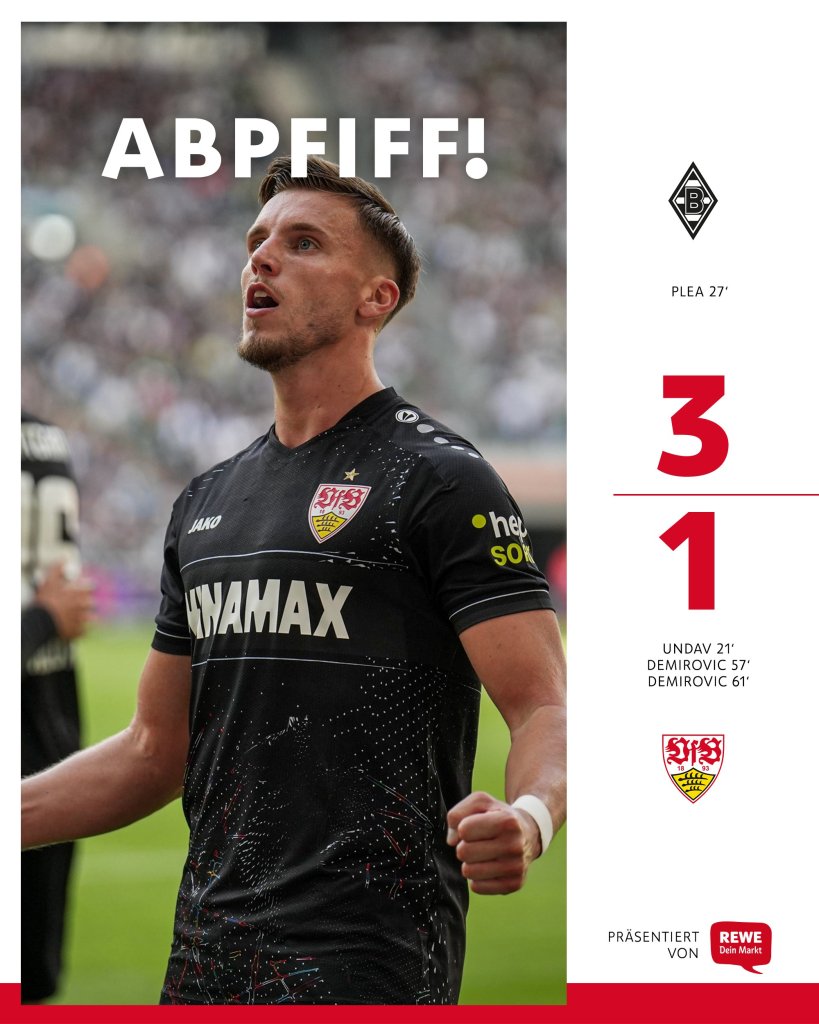 Σεφτέ στις νίκες έκανε η Στουτγκάρδη η οποία άλωσε την έδρα της Γκλάντμπαχ παίρνοντας σπουδαίο διπλό με 3-1. Δύο γκολ πέτυχε ο Βόσνιος επιθετικός Ντεμίροβιτς.